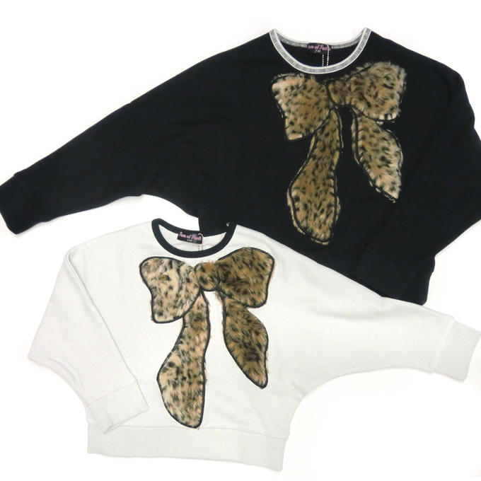 -半端在庫売り尽くし セール 【メール便不可】PUER ED PUELLA★ファー リボンアップリケ ドルマン キッズ トレーナー《100cm 110cm 120cm 女児》