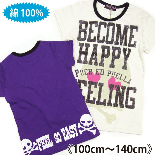 半端在庫売り尽くし【メール便(S)OK】PUER ED PUELLA★ラメロゴ&スカル プリント 半袖 Tシャツ《100cm 110cm 120cm 女児 女の子》