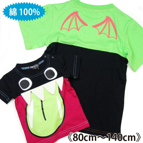 **半端在庫売り尽くし【メール便(S)OK】PUER ED PUELLA★しっぽ付き クレヨンモンスター プリント 半袖 Tシャツ【お薦め】《80cm 100cm 110cm 120cm 130cm 140cm 男児》