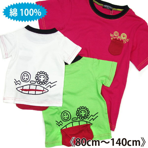半端在庫売り尽くし【メール便(S)OK】PUER ED PUELLA★ビッグフェイス 半袖 Tシャツ《80cm 90cm 100cm 110cm 120cm 130cm 140cm 男児》