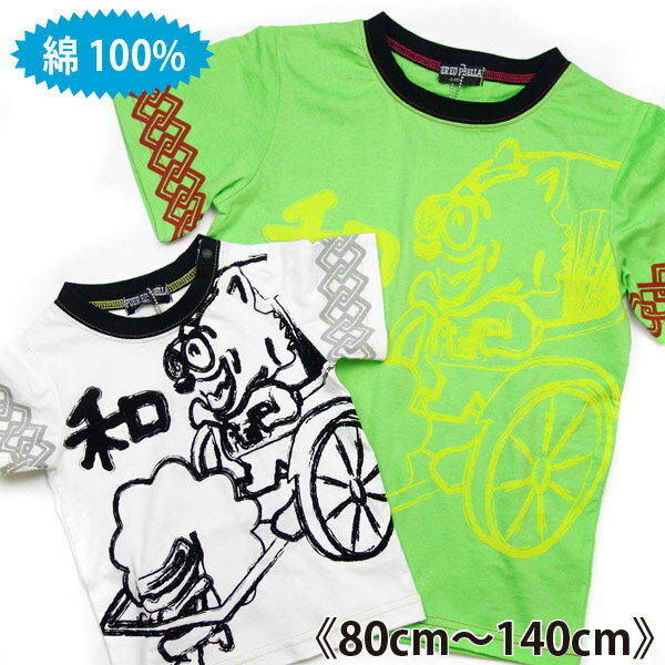 **半端在庫売り尽くし【メール便(S)OK】PUER ED PUELLA★和風 人力車柄 プリント 半袖 Tシャツ《80cm 90cm 100cm 110cm 120cm 130cm 140cm 男児》