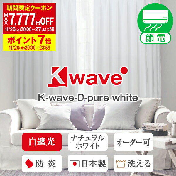 【最大7,777円OFF】11/20 20:00〜11/27 1:59省エネ節電カーテン 白色遮光カーテン 「K-wave-D-pure white」 サイズ:幅30cm〜幅300cm×丈80cm〜丈300cm オーダーカーテン 遮光 白 塩系 1枚入り・2枚組からお選びいただけます