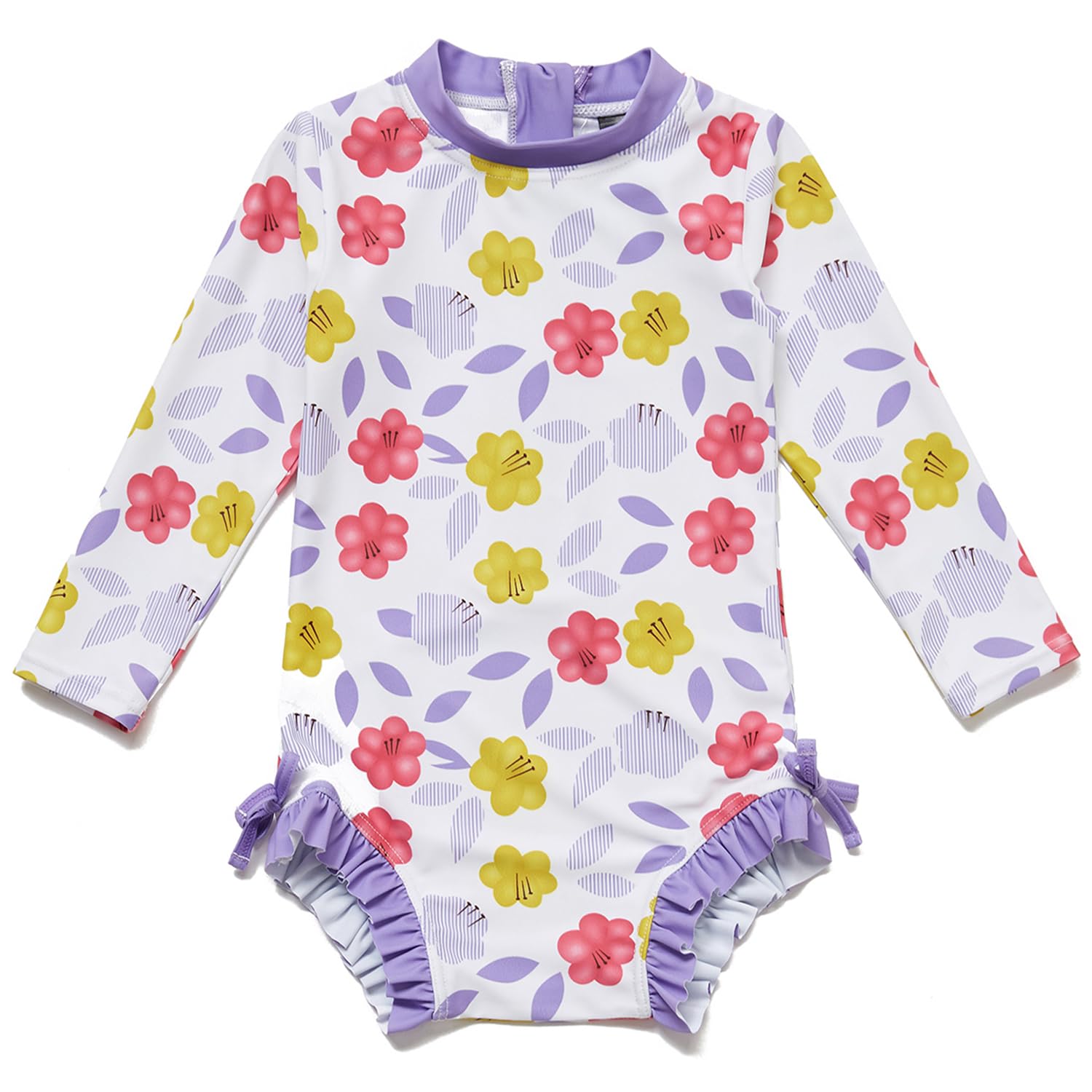 【送料無料】 ベビー 水着 ラッシュガード UPF50+ UVカット 女の子 ワンピース YKKボタン 長袖 色:Purple Flowers、サイズ:2-3 Years