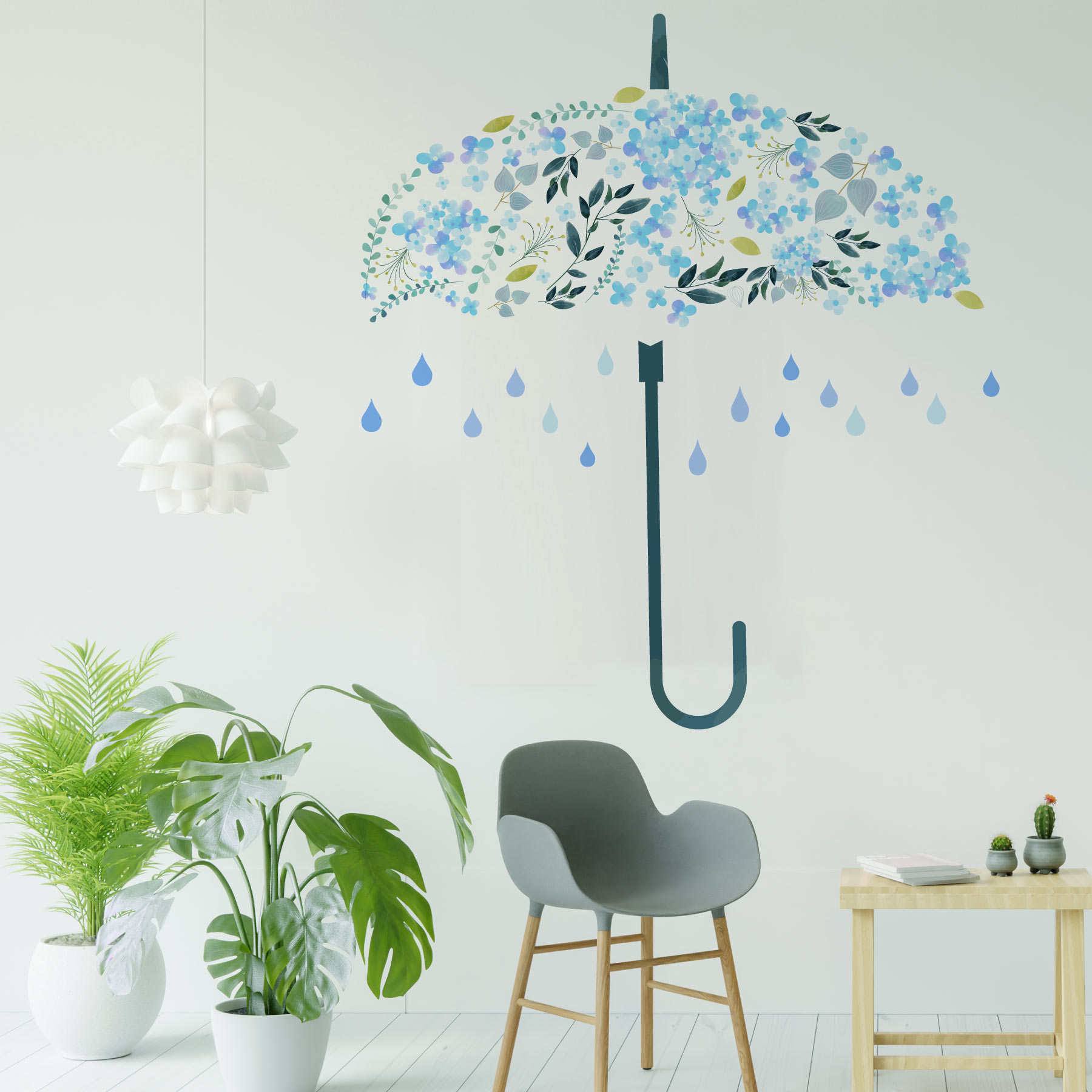 3sizeから選べる!梅雨 rainy days☆シール式ウォールステッカー 190×427mm 390×877mm 590×1327mm Ssize Msize Lsize 傘 花 おしゃれ