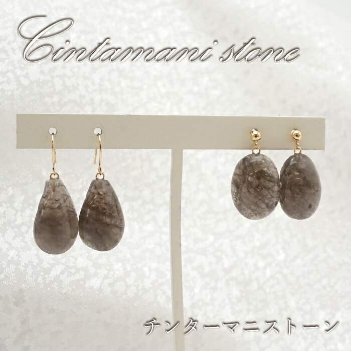 【 一点物 】 チンターマニストーン ピアス アメリカ産 K18 日本製 突き刺し型 フック型 ゴールド 日本製 自社製 Cintamani 超希少石 rare隕石 原石 お守り 天然石 パワーストーン カラーストーン