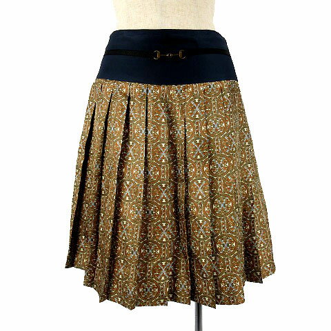 【中古】ルラシェ Relacher スカート ひざ丈 プリーツ ベージュ F 総柄 ビット付 レディース 【ベクトル 古着】 180828 ベクトル店