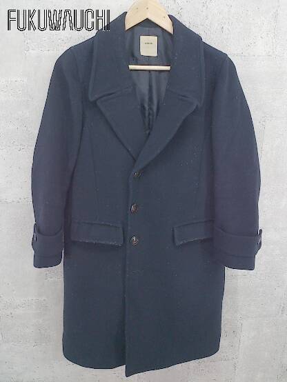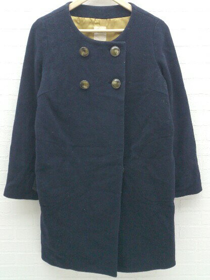 ■ relacher ルラシェ ダブル 長袖 ノーカラー コート F ネイビー * 【中古】