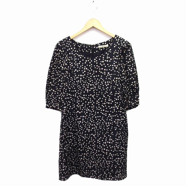 【中古】ルラシェ Relacher ワンピース フレア ひざ丈 透け感 バックジップ ドット 水玉 七分袖 F 黒 ブラック /NT21 レディース 【ベクトル 古着】 230426