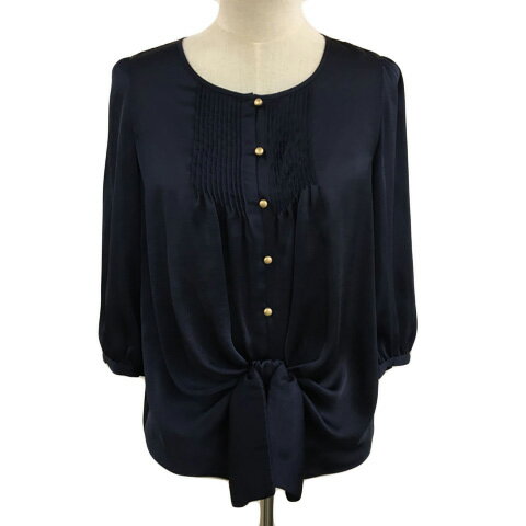 【中古】ルラシェ Relacher カットソー ブラウス プルオーバー ラウンドネック 無地 ピンタック リボン 光沢 七分袖 F 9 紺 ネイビー レディース 【ベクトル 古着】 240711