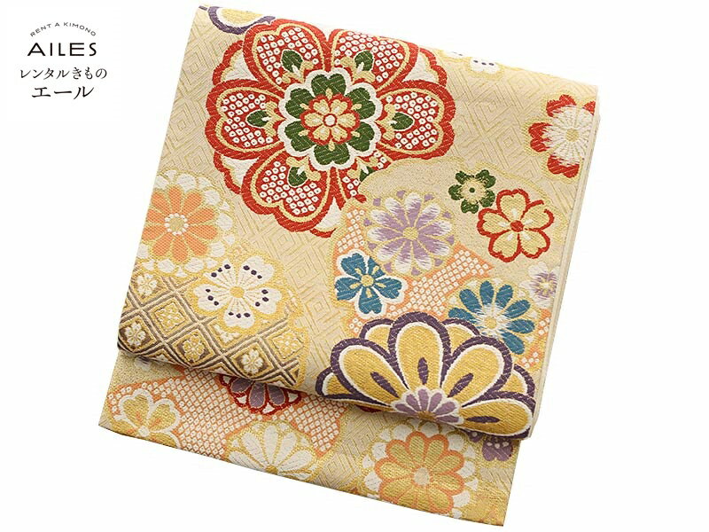 【レンタル】 おしゃれ帯 袋帯 単品 FF0008 金地に古典花柄 帯だけ 単品レンタル 袋帯 振袖/訪問着用帯 rental 華やか 帯 帯のみ 帯だけレンタル 姉フリ ママフリ 姉振 ママ振 母振 【往復送料無料】