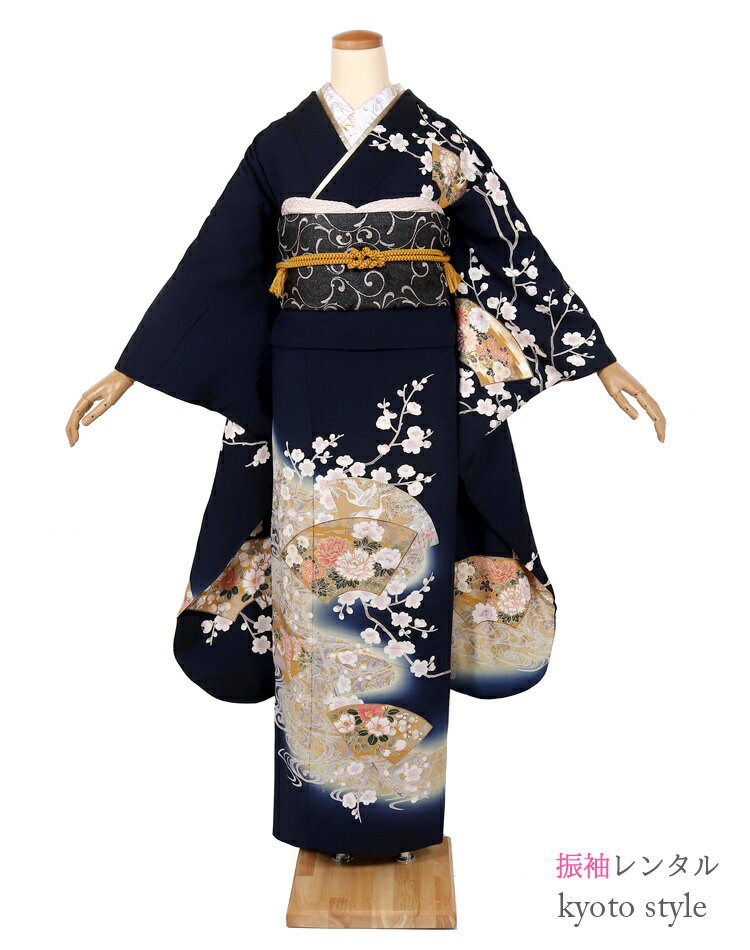 振袖 レンタル 成人式 振袖レンタル 紺 ネイビー フルセット [貸衣装 貸衣裳][成人式 振袖][結婚式 振り袖] 卒業式 結納 レンタル 振袖 着物 レンタル rental レディース 晴れ着 着物レンタル 振り袖 ふりそで rental れんたる シンプル 大人っぽい【レンタル】72257