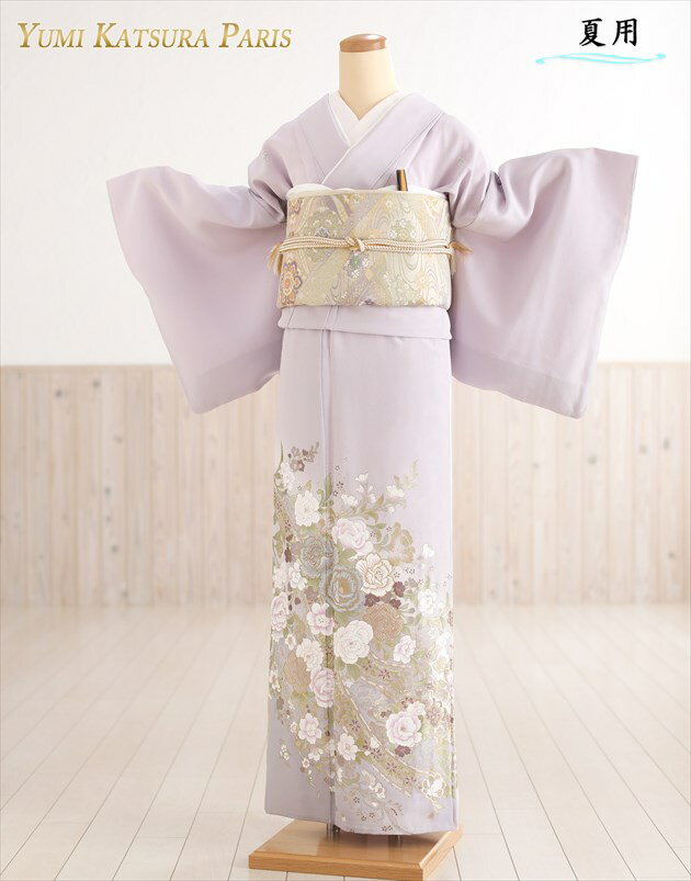 【レンタル】単衣 桂由美 色留袖レンタル sit176【夏用】五つ紋 結婚式 色留袖フルセット 華やか 若い 着物レンタル 単 高級ブランド 式典 親族 人気 留め袖 色留め袖 礼装 正絹 豪華 2022 紫 tomesode kimono rental「白バラ」【fy16REN07】