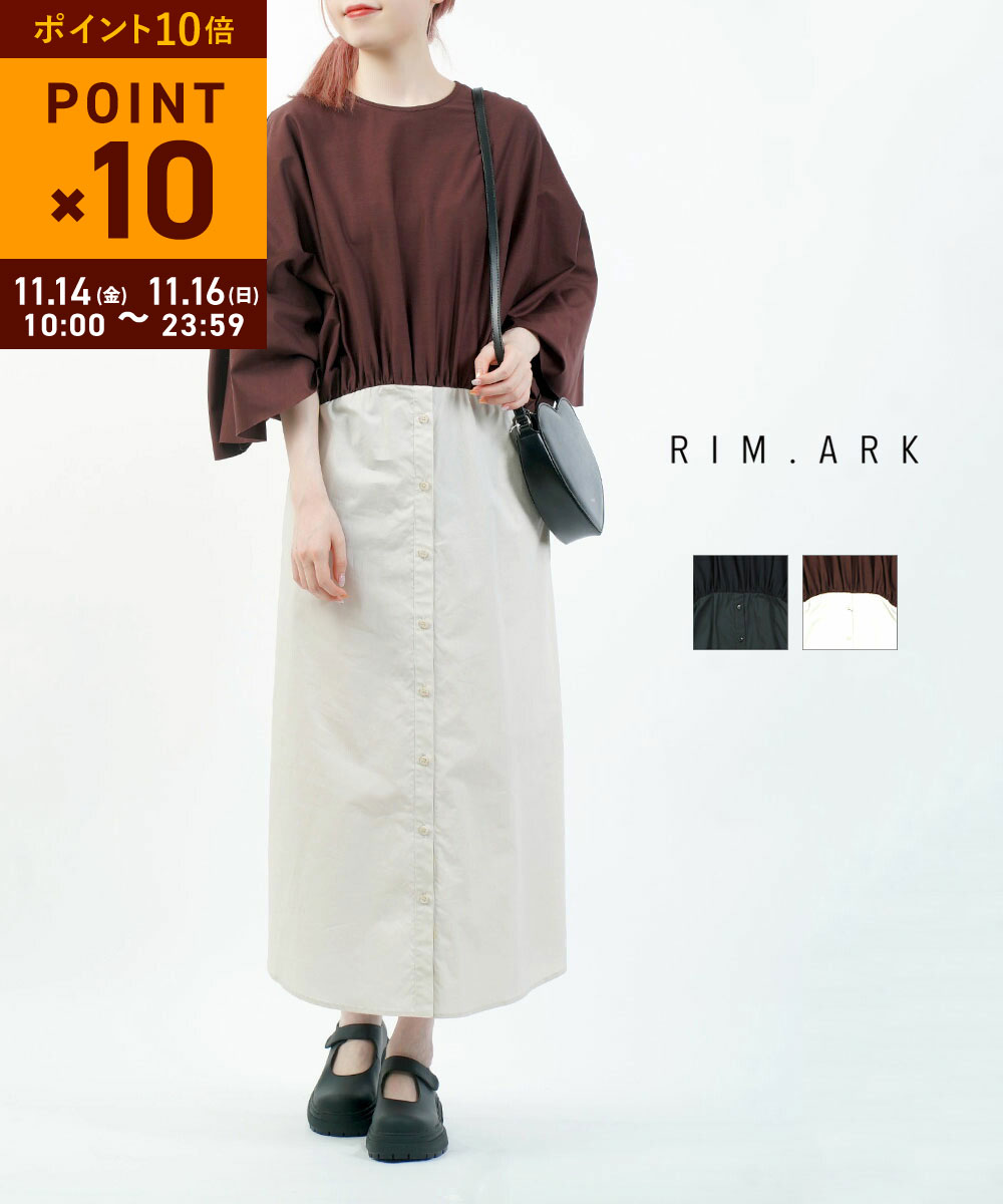 【11/14 10時からポイント10倍】【LINEクーポン有】リムアーク RIM.ARK ワンピース ロングワンピース シャツワンピース マキシ丈 バタフライスリーブ ドッキング おしゃれ きれいめ・460CAL33-0070-4201902(レディース)(2F)