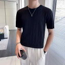Tシャツ メンズ 春夏 カジュアル ニット トップス 高伸縮性 ストレッチ 通気性 吸湿速乾 薄手 ややゆったり クルーネック インナー 丸首 普段使い 混紡素材