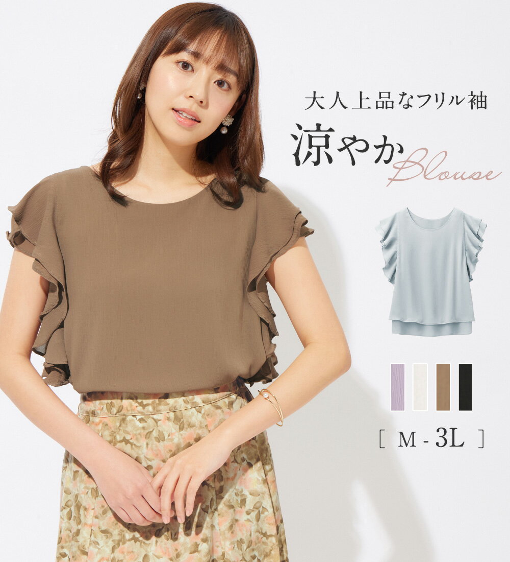 【★本日18時よりP10倍★】 楊柳シフォン袖フリルブラウス レディース 夏 トップス シャツ ブラウス スーツインナー M-3L