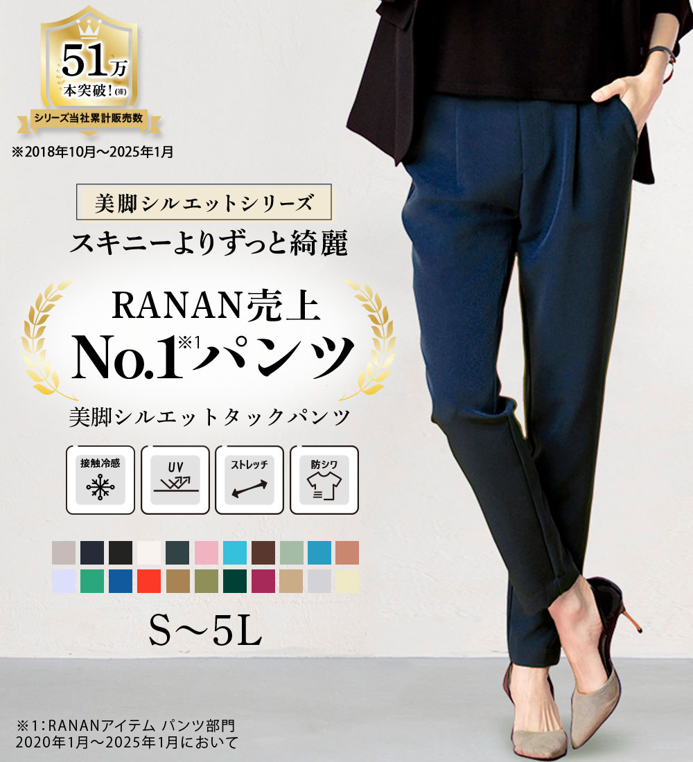 ブランド:Ranan品質/ポリエステル90% ポリウレタン10% ウエスト前脇〜後ゴム使い ポケット有※ オフホワイトの透けが気になる場合はベージュ系インナーの着用をお勧めします。■ひんやり素材自信が持てる美脚見せテーパードきれい色が今季のオススメ!オンもオフにも、マルチに活躍。【商品】・裾に向かって細くなるテーパードシルエットで、脚をすっきり見せてくれる優秀パンツ。・豊富なサイズ×カラーで、おしゃれを後押し。・タック入りで腰回りはゆったり。・フェイクファスナーできちんと見えにも。・高めのフェイクポケットで美尻見せ。・ウエストのサイドから後ろ部分はゴム仕様。【素材】・ストレッチ素材で動きやすくストレスフリーなはき心地。・きれいめの表面感でシワになりにくいのも嬉しい。【豊富なカラー展開&新色追加♪】シルバーグレーとライトイエローが新色として登場【豊富なサイズ展開】S.M.L.LL.3L.4L.5L*実際の商品と色味が異なる場合があります。色:ライトグレー ベージュ ネイビー ブラック ライトカーキ オフホワイト モスグリーン ラズベリー ライトベージュ サーモンピンク セージ ライラック ブライトグリーン ロイヤルブルー オレンジレッド チャコール ライトピンク ファニーブルー ココア ダークブルー シルバーグレー ライムイエローサイズ:S 股下61cm M 股下61cm L 股下61cm LL 股下61cm 3L 股下61cm 4L 股下61cm 5L 股下61cm S 股下65cm M 股下65cm L 股下65cm LL 股下65cm 3L 股下65cm 4L 股下65cm 5L 股下65cm商品カテゴリ:ロングパンツ ロング丈 ボトムス パンツ▲▲イベント特設ページはこちら▲▲【対象期間】11/21 18:00-11/23 23:59迄 レビューキャンペーンはこちら▲ お友だち登録はこちら▲