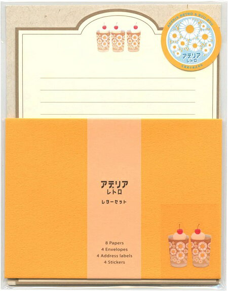 純喫茶のメニュー表をイメージしたレターセット。便箋8枚:182×134mm。封筒4枚:105×142mm(定形内)。宛名ラベル4枚:45×70mm。