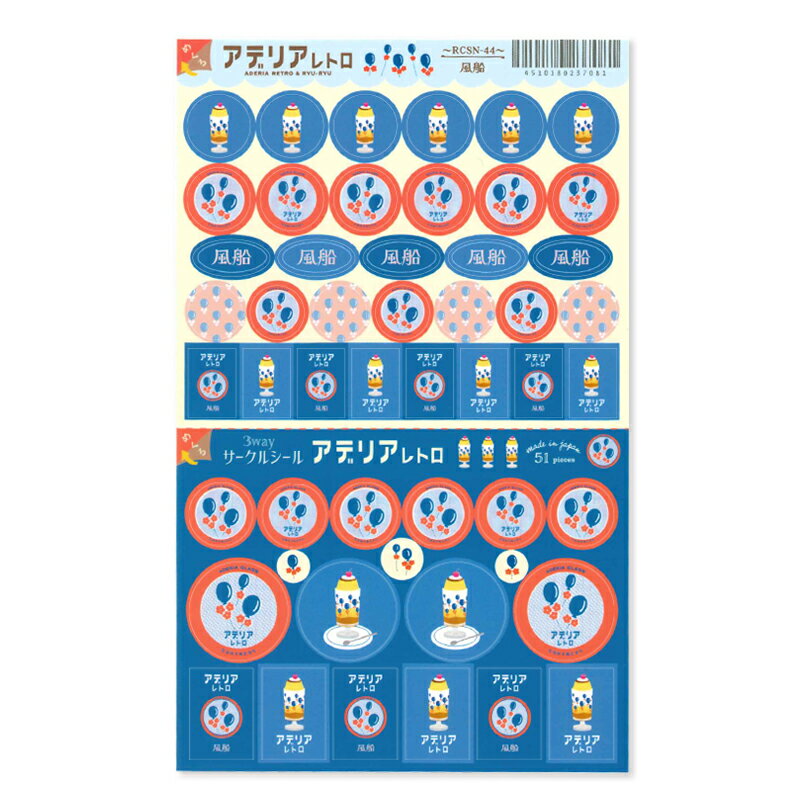 シートシール アデリアレトロ リュリュ RYU RYU シール アデリア ステッカー 風船 ADS04 レトロ 透明シール