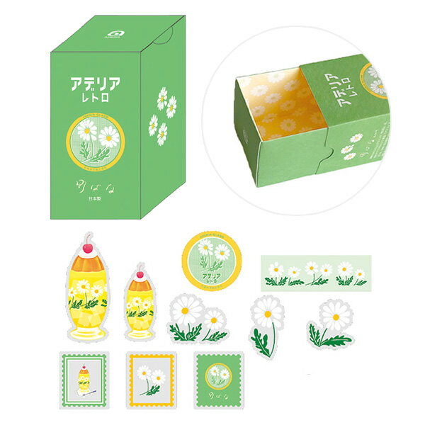 アデリアレトロのグラスが入った外箱をミニチュア化。 グラスモチーフのシールや、ロゴ、切手型のシールなど透明感のあるツヤっとしたシールがたっぷり30枚入っています。 裏面にスリットが入っているためはがしやすいです。 ●内容:シール30枚(10種×各3枚) ●サイズ:縦17~62mm以内×横13~55mm以内(シール) ●箱サイズ:縦67mm×横36mm×厚さ36mm ●素材:紙/透明シール紙 ●原産国:日本製