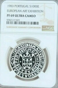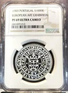1983 ポルトガル シルバー 1000 エスクード アート展 NGC PF 69 ウルトラ カメオ トップ ポップ !