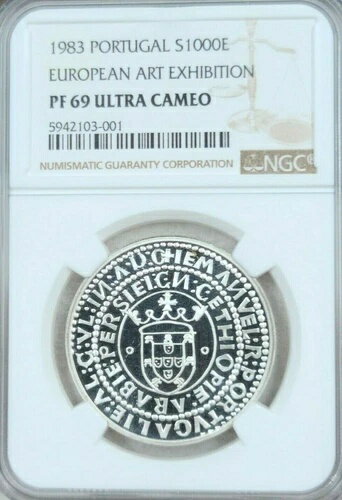 1983 ポルトガル シルバー 1000 エスクード アート展 NGC PF 69 ウルトラ カメオ トップ ポップ
