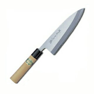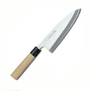 商品概要●商品名:堺孝行 特上鏡面 出刃包丁 18cm●刃渡:180mm●銘:堺孝行白鏡●柄:水牛六角半丸特上(白二鋼)の包丁の表(平の部分)を鏡のように磨いて、錆や汚れが付きにくいようにしました。●伝統工芸士:富樫憲治作伝統工芸士・富樫憲治について昭和22年3月16日生まれで、1996年通産大臣指定の鍛冶職人の伝統工芸士に認定される。19歳からこの道に入り現在に至る。堺、古来からある伝統手法を守り続けるという信念を持つ。特上鏡面(白鏡)包丁シリーズ特上鏡面(白鏡)特上(白二鋼)の包丁の表のような丹念に磨いて、サビやよごれがつきにくい様に仕上げました。 特上鏡面 正夫包丁元々は関西型の刺身包丁だが現在は全国的、関西では正夫(しょうぶ)関東では柳刃ともいう。 特上鏡面 ふぐ引包丁ふぐ等の薄造り用で柳刃より幅も厚みも薄い。別名テッサ包丁ともいう。 特上鏡面 出刃包丁魚や鳥を卸す物だが厚みや長さによってかなりの種類に分かれ用途は広い。 特上鏡面 鎌形薄刃包丁関西型の野菜切で小さい物は面取りなどの細工包丁として使う。 特上鏡面 薄刃包丁関東型の野菜切で一般的には片刃だが地方によって両刃の物もある。 ●刃物など金属製品をお使いになる前に料理で使う包丁や刃物など金属製品は食材を調理した後、すぐに洗浄してください。食材が刃物についたまま、放置されますと錆や水アカの原因となります。また、水洗いをした後、濡れたままで放置すると錆や水アカが発生しますので使用後はふきん等で水気を取り、風通しの良いところで乾燥させて下さい。また柄の付け根は濡れたままにすると腐りやすくなりますのでご注意ください。【2018PO】【 業務用 】出刃包丁 堺孝行 特上鏡面 18cm【 庖丁 包丁 出刃包丁 包丁職人 包丁 sakai hocho 】【厨房館】
