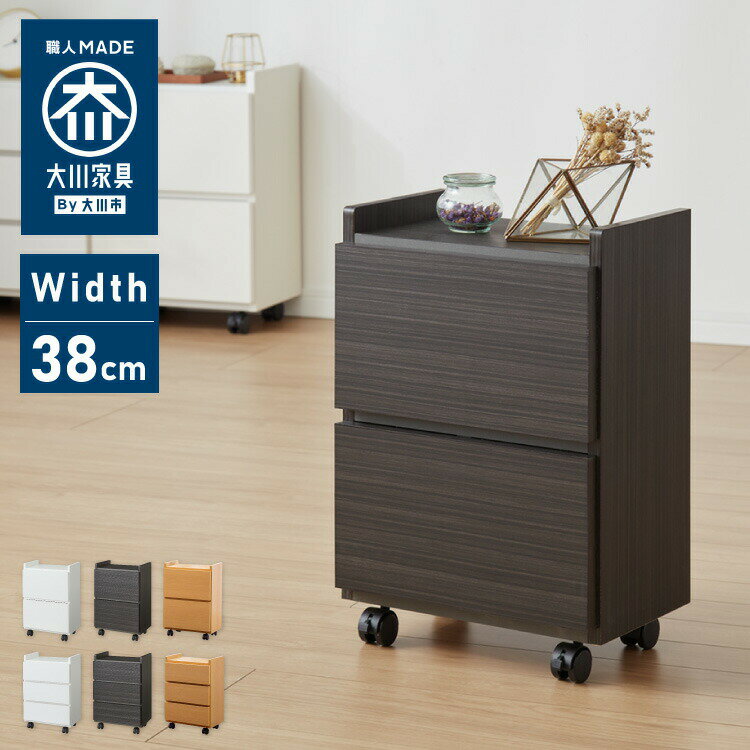 職人が作る2段/3段ワゴンチェスト 日本製 完成品 大川家具 幅38 チェスト ワゴン 引出し収納 リビングチェスト キャスター付き デスク下 棚 ラック おしゃれ サカイデザイン Sakai Design(代引不可)【送料無料】