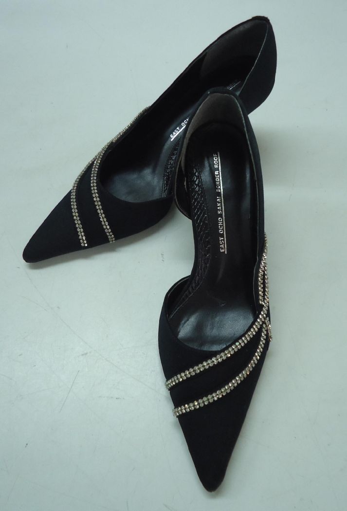 【中古】【あす楽可】【EAST OCHO SAKAI BORDER ROOF】ポインテッドトゥ ラインストーンデザインパンプス★22.5cm/ヒール高:約6cm