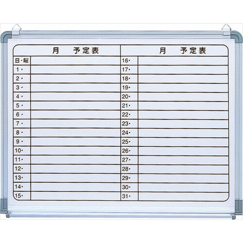 商品説明★ 月間スケジュール罫線入りタイプです。★ 右と左に分けて、半月ごとのスケジュール変更と管理ができます。スペック* 本体寸法:W900×H600×D20mm* 有効盤面寸法:W850×H560mm* 本体重量:3.7kg* 材質:フレーム・ペントレー/アルミ、盤面/スチール、芯材/段ボール* 付属品:マーカー(黒・赤各1本)、イレーザー(1個)、マグネット(レッド4個)