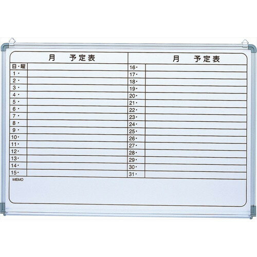 【返品種別A】□「返品種別」について詳しくはこちら□2004年03月 発売◆月間スケジュール罫線入りタイプです。右と左に分けて、15日ごとのスケジュール変更と管理ができます。■ 仕 様 ■本体寸法:幅900×奥行20×高さ600mm有効盤面寸法:幅860×高さ560mm本体重量:3700g付属品:マーカー(黒・赤各1本)、イレーザー(1個)、マグネット(レッド4個)材質:フレーム・ペントレー/アルミ、盤面/スチール、芯材/段ボール[SBJ9060]OAサプライ/OA機器>オフィス事務用品・文房具>事務用品>オフィスボード・ホワイトボード