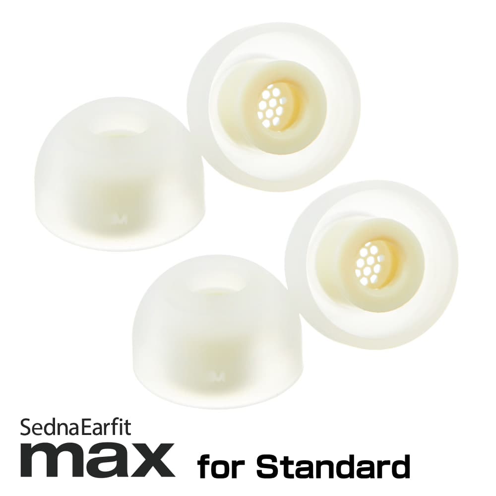 【返品種別A】□「返品種別」について詳しくはこちら□2022年07月 発売◆究極の低刺激フィットを目指した『SednaEarfit MAX』イヤホンの音質を最終的に決める重要なファクターであるイヤーピース。「SednaEarfit」(セドナイヤーフィット)シリーズは、788人の外耳道を分析したデータに基づいた基本設計と軸構造により、高いレベルのフィッティングとイヤホンノズルへの固定力、同時に遮音性の向上を可能にし、また独特の形状により音の直進性を確保、自然な音色と共に高域特性を改善するハイグレード交換用イヤーピースです。最新モデル『SednaEarfit MAX』(セドナイヤーフィット・マックス)は、「究極の低刺激フィット」をスローガンに、シリーズ史上最も過敏な耳への低刺激性のイヤーピースを目指して開発しました。◆KCC SILICONE社100%医療用メディカルシリコンSednaEarfit MAXは、究極の低刺激フィットを実現するべく度重なる試作と試験を行い、耳道内に触れるイヤーピース傘部とワックスガード部に、色素やプラスチック等のどんな成分も混合しない認証された安全素材である、KCC SILICONE社の医療用メディカルシリコンを100%使用。外科手術中に体内への挿入などで使用される100%医療用シリコンのため、優れた安全性を持ち、しなやかな弾性とパウダリーな質感が特徴であり、耳道内が敏感な方でも低刺激で使用できます。※メディカルグレードは医療用に近い等級であり、医療用素材ではありません。「メディカル」の表記は医療用でのみ表記ができ、SednaEarfit MAXは医療用素材が使用されています。◆テーパード型構造設計一般的なイヤーピースの構造は、耳の内側部分と外側の厚みが同じ、または内側に向かうほど厚くなるため、強い圧迫感を与えます。これにより耳への持続的な圧迫と刺激が痛みを誘発し、さらに密閉性が低く遮音性に欠けてしまいます。SednaEarfit MAXではフィッティング面においてそれらを解決するためにテーパード型構造設計を初採用しました。通常では成形が非常に難しいテーパード型イヤーピースは、耳に触れる部分に向かうほど厚みが薄くなる構造設計です。これにより低圧迫と高遮音性の両立を実現しています。◆新開発ハニカム構造コアレスワックスガードSednaEarfit MAXの大きな特徴の一つとして、理想的な音響のために新開発した蜂の巣型六角形(ハニカム)構造のコアレスワックスガードを搭載しています。従来のイヤーピースのワックスガードフィルター構造はプラスチックフィルターを接着する方式のため、柔軟性がなく圧迫感が強くなり、接着剤などによるアレルギーの危険性もあります。SednaEarfit MAXではそれらを解決するため、特許取得済みとなるイヤーピースの傘部分からフィルターまで一度に成形する金型設計により、コアレスの一体型シリコンフィルターを新開発。別途化学薬品を使用せずに製造が可能となり、さらに柔らかいためダンパーとして機能することで圧迫感を減らします。そして独自の蜂の巣型六角形のフィルター構造を採用しました。六角形シリコンフィルターは、フィルターネットがイヤホンから出る音の伝達を邪魔することなく、効果的に異物の流入のみを防ぐことを可能にしました。六角形構造は様々な数学的テストを通じて図形間の余白と外郭ライン余白を最小化し、効果的に異物の流入率を減らしつつ音の伝達力を増加させる設計です。◆3タイプの形状をラインアップSednaEarfit MAXでは、多くのSednaEarfitシリーズユーザーからのリクエストを参考に、現代の有線及び無線イヤホンの形状とノズル経を徹底して調査を行い、ユーザーがより最適なイヤーピースを選択できるよう、3タイプのイヤーピース形状を開発しました。一般的なイヤホンや細軸ノズルのイヤホン、通常ノズルのワイヤレスイヤホン用の『Standard』、充電ケース内が狭く一般的なイヤホン用の軸の長さではケースが閉まらないノズルが短い完全ワイヤレスイヤホン用に最適化して軸部と傘部を短くした『for TWS』、専用のウレタンコーティングアダプターを採用したApple AirPods Pro用『for AirPods Pro』の3タイプをラインアップ。・Standard「Standard」には細いノズルのタイプのイヤホンにも装着を可能にする「細軸ノズルアダプター」を標準付属。・for TWS「for TWS」はStandardと比べ、軸部の長さを4.9mmに変更し、ノズルの短い完全ワイヤレスイヤホンに最適化。・for AirPods Pro「for AirPods Pro」のAirPods Pro装着用マウンティングアダプターは、一般的なプラスチック製アダプターと異なり、ウレタンコーティングアダプターとイヤーワックスガードを採用。本体との密着度が上がり、低域強化と音漏れ防止、アクティブノイズキャンセリング効果の強化を実現します。また、メンテナンス性を重視して軸部(アダプター)と傘部(イヤーピース)が分離する構造を採用。※各サイズを装着した状態で充電ケースに収納可。◆より多くの方にベストフィッティングさせるサイズ展開Standardは、従来のSS/S/MS/M/ML/Lの計6サイズ展開