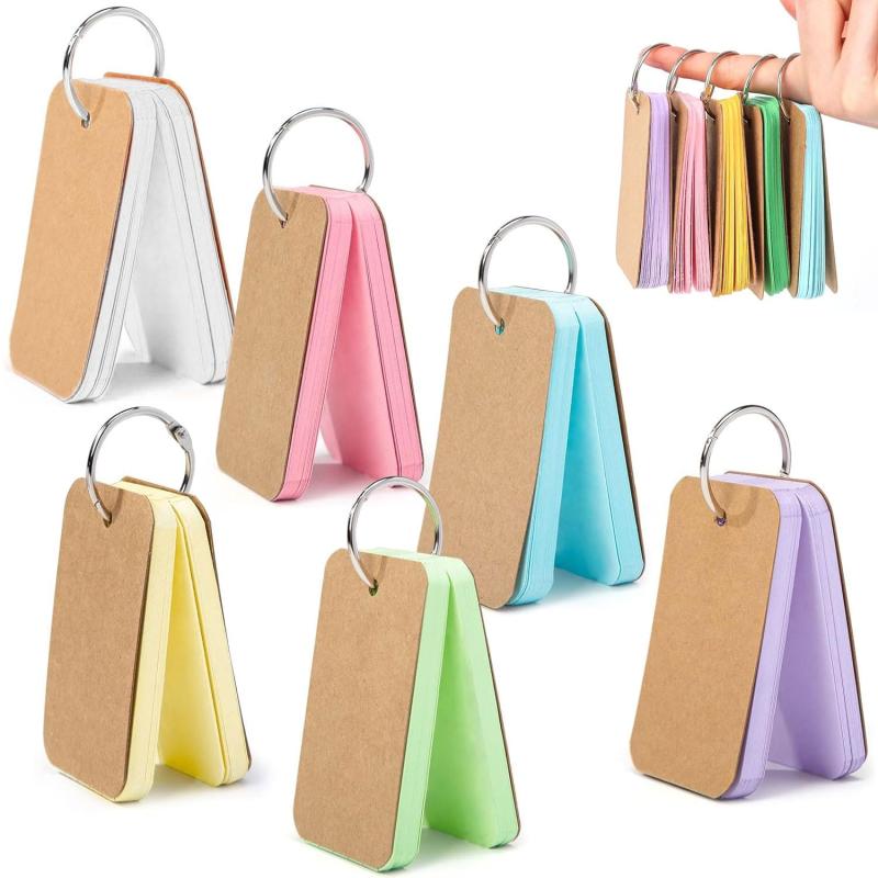 単語帳 暗記カード 6個入り 300枚 携帯メモ帳 携帯用単語帳 ノートブック リングバックル空の白ボール紙 硬くて厚い 強靭さ 高い耐破損性 平らな表面 (カラード)