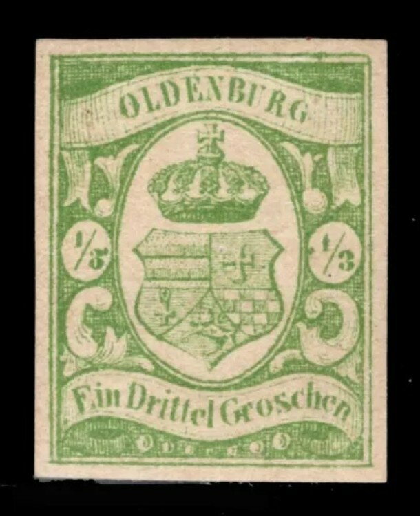 MOMEN: ドイツ国オルデンブルク MI #10b 不完全な新品 OG NH バーゼル認定 ロット #67610