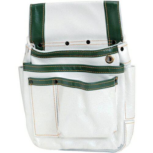 SK11 エバースキンマチ付釘袋 SEMK-PWH ホワイト雨・汚れに強いエバースキン革で抜群の耐久性です。釘などのパーツ、金槌等の道工具類の収納、携帯。金槌などの収納に最適です。ヨレを防止するボード補強付きです。立体加工により出し入れ簡単です。●サイズ:(縦)約320x(幅)約270mm。●60mm幅ベルトまで対応。●カラー:パールホワイト。材質●本体:エバースキン。