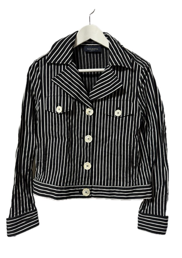 【中古】PIAZZA SEMPIONE ピアッツァ センピオーネ ストライプジャケット 40 ブラック 長袖 レディース 【ベクトル 古着】 231127