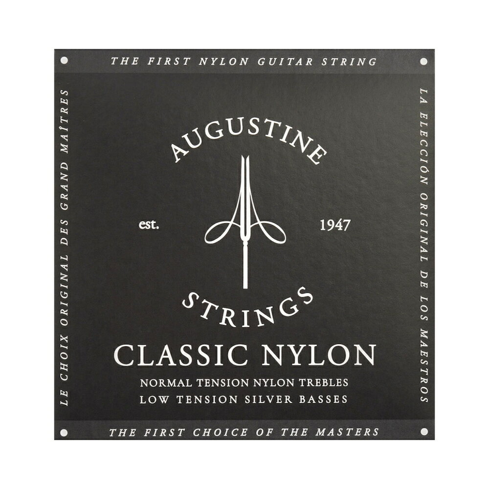 AUGUSTINE BLACK SET×3SET クラシックギター弦オーガスチン ブラックセットです。輝かしい音色と耐久性を誇るナイロン弦を世界で初めて開発、またたくまにギター弦の標準となり、ギタリストの間で絶大な人気を誇るブランド、それが「オーガスチン」です。オーガスチンの原点でもあり、世界のナイロン弦の標準的な存在といえるオリジナルナイロン弦です。テンション:レギュラー(ローテンション)3セットでの販売となります。