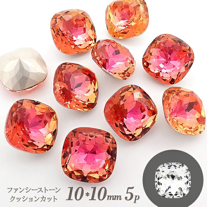 P5倍★MAX20%オフクーポン★ファンシーストーン 5個 【01-20. クッションカット 10×10mm サンセットピンク 】 オーロラ加工なし ラインストーン Vカット フォイルバック ビジュー デコ ネイル レジン グルー 立体 国内発送