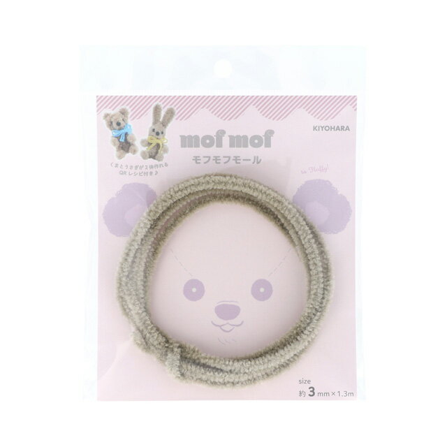 KIYOHARA モフモフモール モール 幅3mm×1.3m巻 SGRY セージグレー くま・うさぎ が作れるレシピのQRコード付き MOF-01