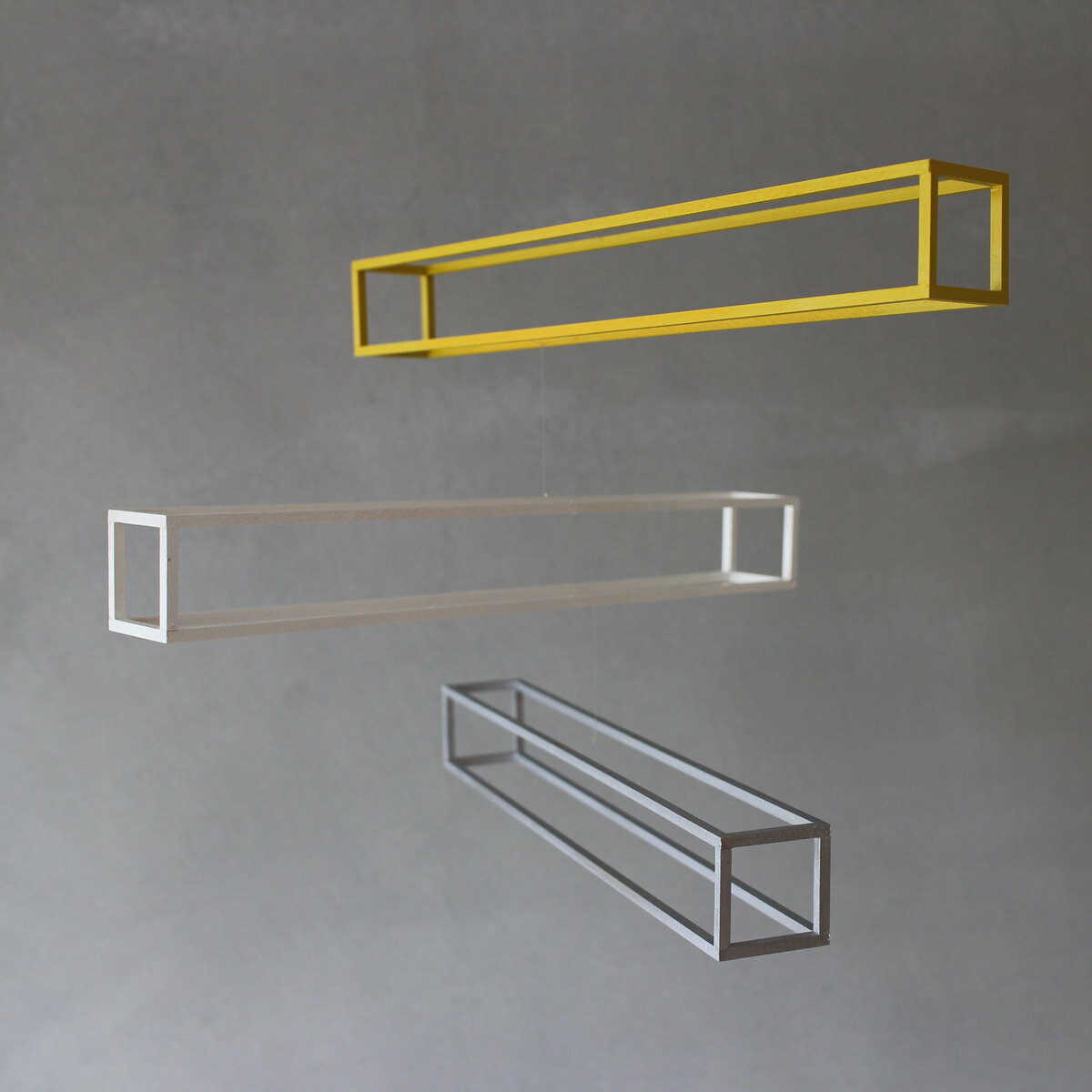 【shigeki fujishiro】Frames モビール zuiunオリジナル藤城成貴氏が自ら製作するモビール「Frames」のzuiunオリジナル(カラー)素材は角材(ヒノキ)と透明な糸。こんなシンプルな構造とは裏腹に、骨格だけで構成されたその形は、まるで浮遊しているかのよう。見る角度や動きにより表情を変え、照明を当てることで壁や天井に現れる影は、光の角度、強さ、距離により全く異なる形を映し出し、思わず驚きの声を上げてしまうほど新鮮な感動を与えてくれます。shigeki fujishiro 「Frames」デザイナー藤城成貴氏が自ら製作する、 スケルトン構造の四角い物体を縦に連ねたモビール「Frames (フレームス)」。モビールとはキネティック・アート(動く彫刻)という新しい美術概念の一環として生まれたもの。 作品に動きを与えることで、空間と時間の双方による表現を目指したもので、アートとしての側面を持っています。2009年には国立新美術館のSFTギャラリーにおいてFramesの企画展も行われ、多くの方に好評を博しました。見る度に想像力を刺激するFrames。インテリアグッズとしての枠を超えたアートモビールです。商品説明商品名shigeki fujishiro モビール / zuiunオリジナルサイズ1段目~3段目W30×D4×H4色zuiunオリジナルカラーイエローホワイトシルバー材質ヒノキ(塗装仕上げ)、釣り糸、厚紙生産国日本製その他の商品shigeki fujishiro の商品はこちら→その他の注意事項※モニターの環境により、実際の色と多少異なることがありますので、予めご了承ください。※実店舗でも販売しておりますので売り違いの際はご了承くださいませ。※予め十分ご確認の上、ご注文頂きますようお願い申し上げます。