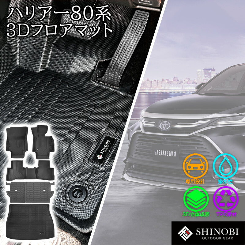 【ワンダフルデー P5倍】 トヨタ ハリアー80系 SHINOBI フロアマット ラゲッジマット リアラゲッジ ラゲッジ ガード ラゲッジ背面カバー カーゴマット 荷室マット 立体マット カーマット 車マット 3Dマット フルセット TOYOTA 防水 内装 カー用品 汚れ防止 傷ガード