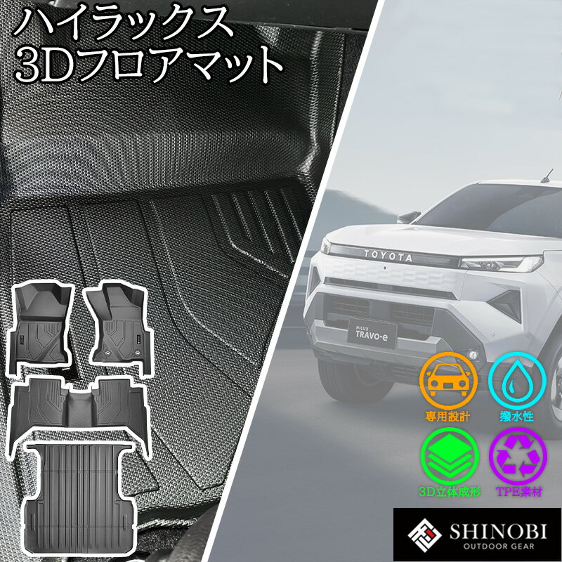 【ワンダフルデー P5倍】 トヨタ ハイラックス フロアマットSHINOBI 運転席 助手席 2列目 ラゲッジマット フルセット カーゴマット 荷室マット リアラゲッジ ラゲッジ ガード 立体マット カーマット 車マット 3Dマット TOYOTA HILUX 防水 内装 カー用品 汚れ防止 傷ガード