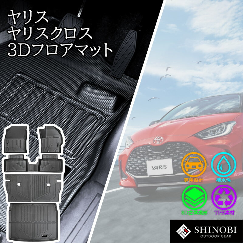 【ワンダフルデー P5倍】 トヨタ ヤリス ヤリスクロス フロアマット SHINOBI 運転席 助手席 2列目 ラゲッジマット フルセット 背もたれカバー リアラゲッジ ラゲッジ ガード 立体マット カーマット 車マット 3Dマット 防水 内装 カー用品 汚れ防止 傷ガード 車種別専用設計