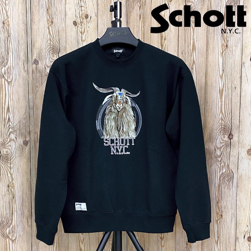 送料無料 Schott ショット メンズ COLOR FLOCKY GOAT CREW SWEAT カラーフロッキー ゴート クルースウェット トレーナー 長袖 トップス 782-4232006