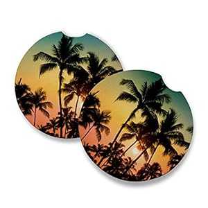 ヤシの木の夕日 写真 ドリンク用カーコースター 2個セット 吸収性コースター付きの完璧なカーアクセサリー。カーコースターのサイズは2.56インチで、裏地はゴム製です。 IT'S A SKIN Palm Tree Sunset Car Coasters for drinks Set of 2 Perfect Car Ac