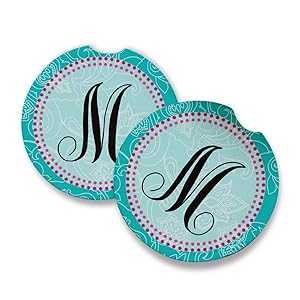 モノグラムM ドリンク用カーコースター 2個セット 吸収性コースター付きの完璧なカーアクセサリー。カーコースターのサイズは2.56インチで、裏地はゴム製です。 IT'S A SKIN Monogram M Car Coasters for drinks Set of 2 Perfect Car Accessories with