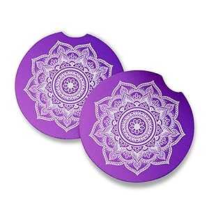 IT'S A SKIN Purple Mandala Car Coasters for Drinks Set of 2 Perfect Car Accessories with Absorbent Coasters. Car Coaster Measures 2.56 inches with Rubber Backing.