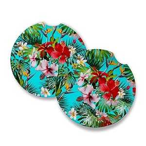 トロピカルレッドハイビスカス 写真 ドリンク用カーコースター 2個セット 吸収性コースター付きの完璧なカーアクセサリー。カーコースターのサイズは2.56インチで、裏地はゴム製です。 IT'S A SKIN Tropical Red Hibiscus Car Coasters for drinks Set of