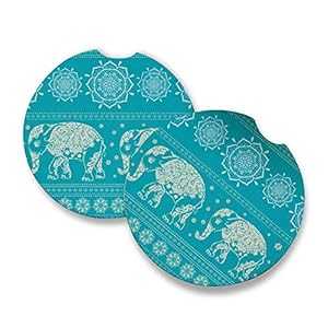 ブルーエレファントパターンプリント ドリンク用カーコースター 2個セット 吸収性コースター付きの完璧なカーアクセサリー。カーコースターのサイズは2.56インチで、裏地はゴム製です。 IT'S A SKIN Blue Elephant Pattern Print Car Coasters for drinks Se