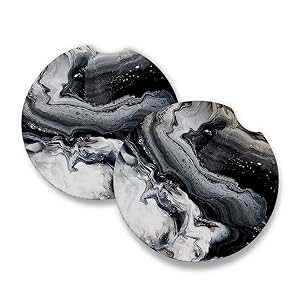 IT'S A SKIN Black Marble Car Coasters for Drinks Set of 2 Perfect Car Accessories with Absorbent Coasters. Car Coaster Measures 2.56 inches with Rubber Backing.