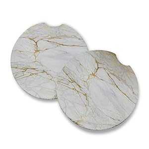 ゴールドマーブル ドリンク用カーコースター 2個セット 吸収性コースター付きの完璧なカーアクセサリー。カーコースターのサイズは2.56インチで、裏地はゴム製です。 IT'S A SKIN Gold Marble Car Coasters for drinks Set of 2 Perfect Car Accessories